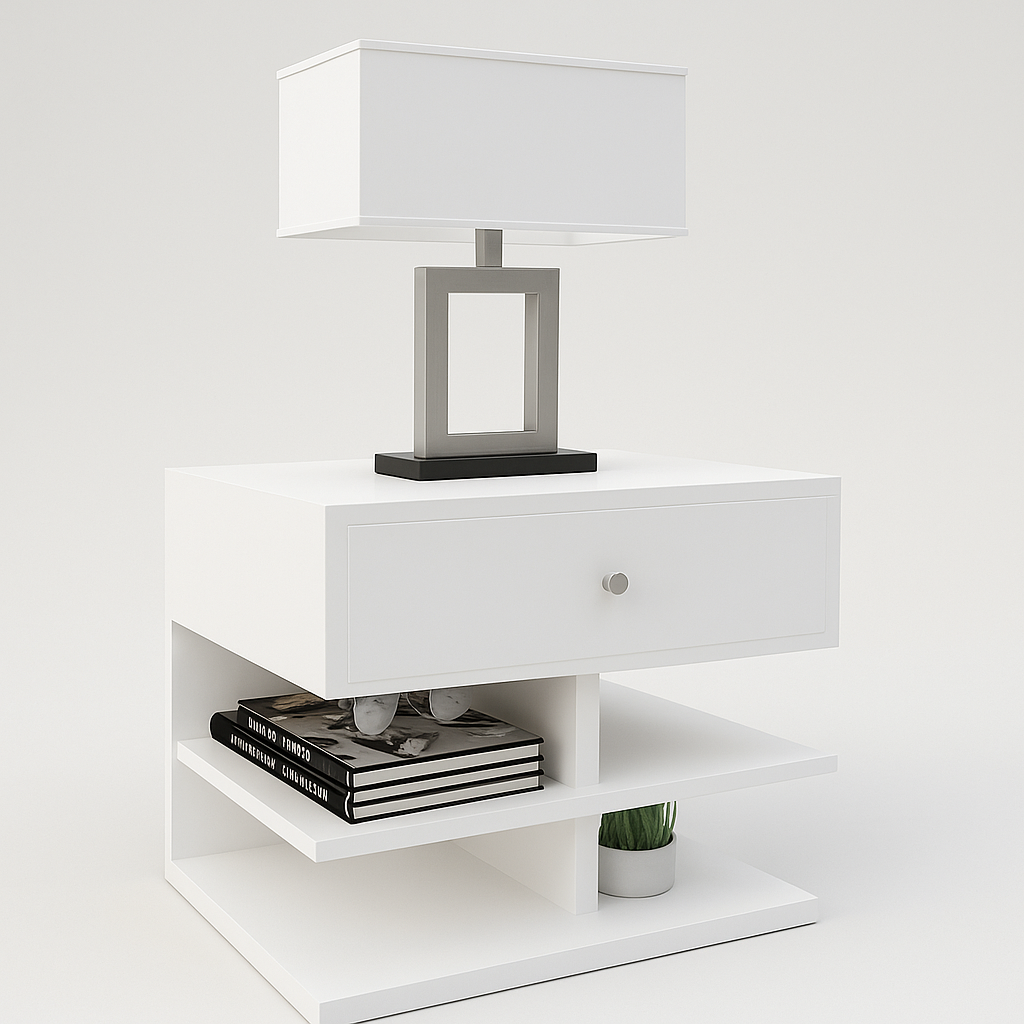La mesa de luz ACHERY fusiona funcionalidad y estética moderna. Compacto pero práctico, ofrece almacenamiento justo al lado de la cama sin perder estilo.
